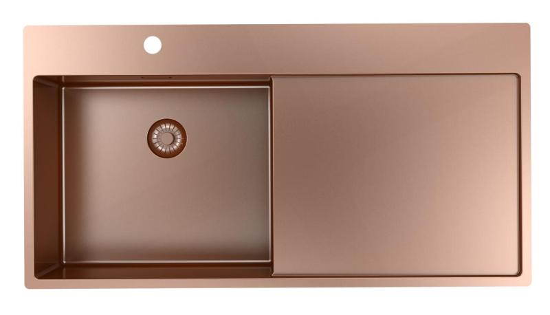 Pure.Sink Exclusivo Kupariallas, jossa on tippualusta 100x52 cm, vasen hanaputki PEX47100LT-62